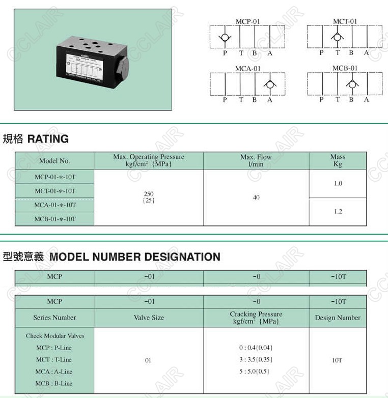 詳細(xì)信息 MCA-01-3,疊加式單向閥YUKEN