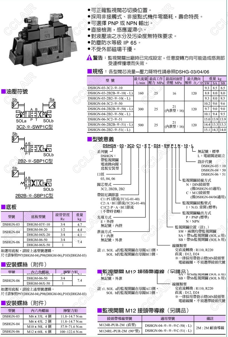 DSHGN-03,DSHGN-04,DSHGN-06,DSHGN-03-3C2-ET-D24-SWP1N-10,DSHGN,帶監(jiān)視開關電液換向閥YUKEN