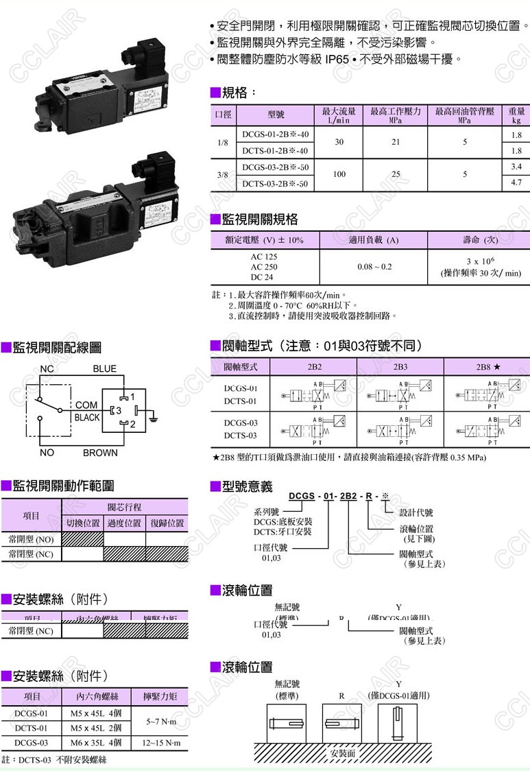 DCGS-01-2B2-40,DCGS-01-2B3-Y-50,DCTS-03-2B8-R-50,DCGS,帶監(jiān)視開關(guān)機(jī)動(dòng)換向閥YUKEN