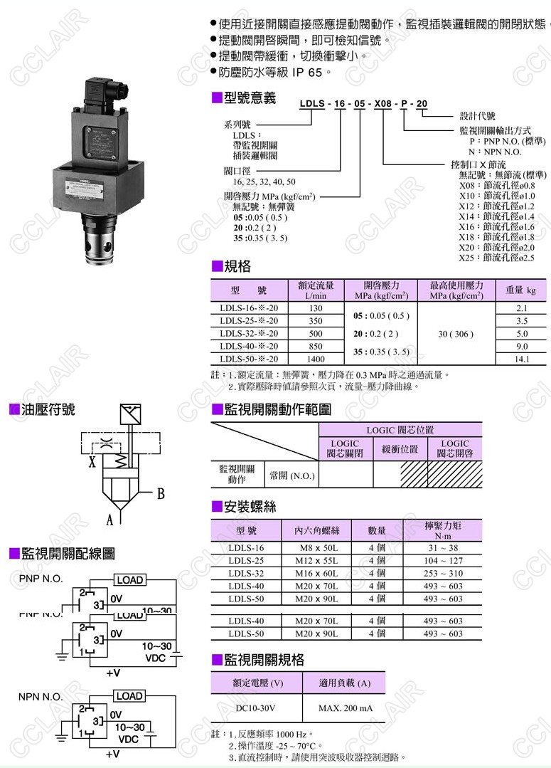 LDLS-25-P-20,LDLS-40-P-20,LDLS-50-N-20,LDLS-16-05-X08-P-20,帶監(jiān)視開關(guān)插裝邏輯閥YUKEN