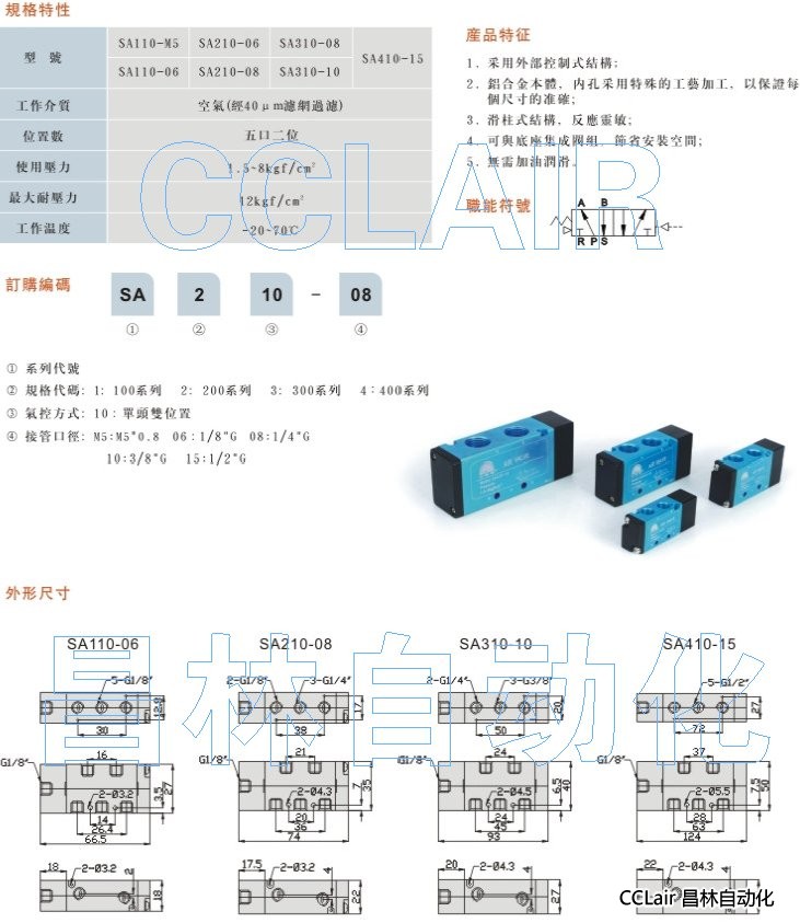 SA310-08,SA410-10,SA410-15,SA310-M5,SA410-M5,SA310-06,SA410-06,單頭雙位氣動(dòng)閥