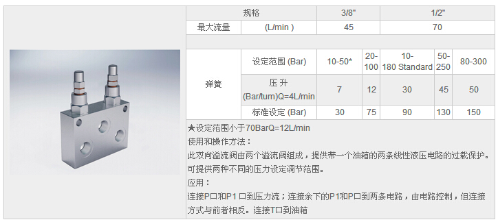 HYVMPD 3/8",HYVMPD 1/2”,雙向溢流閥