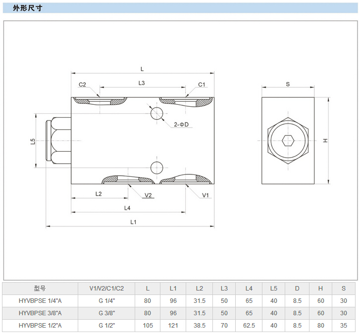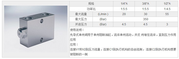 詳細(xì)信息 HYVBPSE 1/4"A,HYVBPSE 3/8"A,HYVBPSE 1/2"A,單先導(dǎo)式單向閥