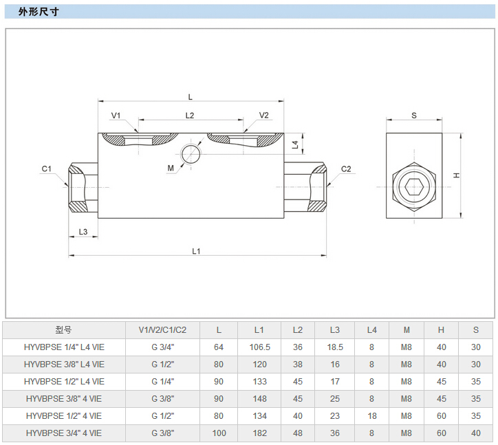 詳細(xì)信息 HYVBPSE 1/4" L4 VIE,HYVBPSE 3/8" L4 VIE,HYVBPSE 1/2" L4 VIE,HYVBPSE 3/8" 4 VIE,HYVBPSE 1/2" 4 VIE,單先導(dǎo)式單向閥