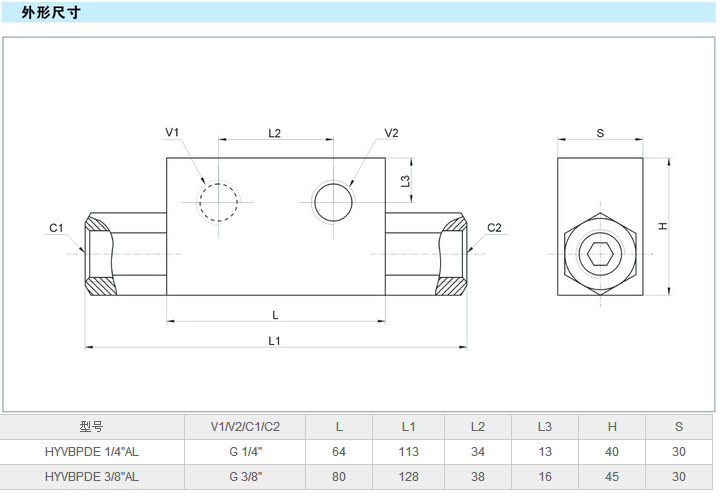 詳細信息 HYVBPDE 1/4"AL,HYVBPDE 3/8"AL,先導式雙單向閥