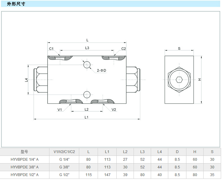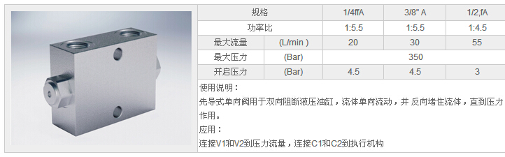 詳細(xì)信息 HYVBPDE 1/4” A,HYVBPDE 3/8" A,HYVBPDE 1/2" A,先導(dǎo)式雙單向閥