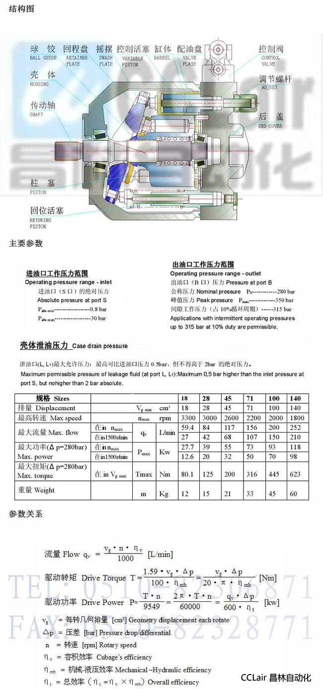 3 流量正比于驅(qū)動(dòng)轉(zhuǎn)速和排量,并可通過(guò)調(diào)節(jié)斜盤(pán)傾角實(shí)現(xiàn)無(wú)級(jí)變量。