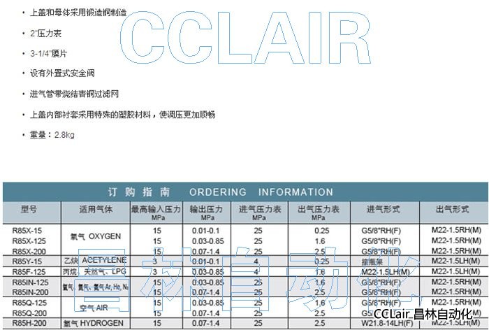 詳細(xì)信息 R85X-15,R85X-125,R85X-200,R85Y-15,單級(jí)式超重型減壓器