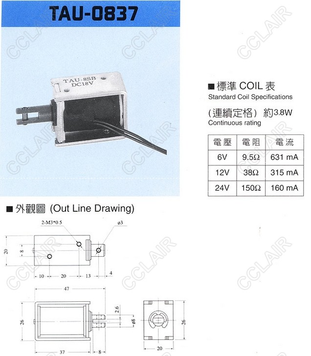 詳細(xì)信息 TAU-0837,直流電磁鐵