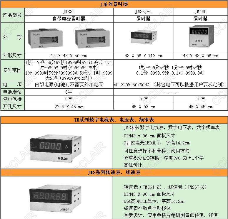 詳細(xì)信息 JMS3L,JMS6J-L,JM48L,累時(shí)器