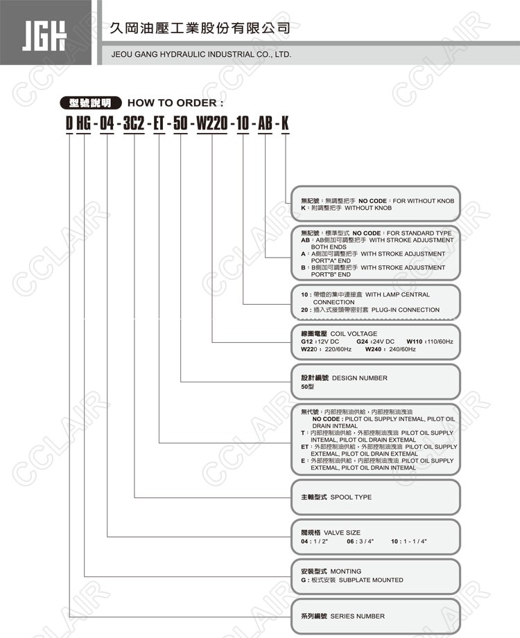 JeouGang臺灣久岡,電磁液控方向閥DHG-043C2-50-G12/50-10,DHG-043C2-50-W110/50-10-A,DHG-043C2-T-50-G24/50-20-AB-K,DHG-043C2-ET-50-G24/50-10-K,DHG-043C2-E-50-G12/50-10,DHG-063C2-E-50-G12/50-10-AB,DHG-103C2-T-50-G24/50-20-AB-K