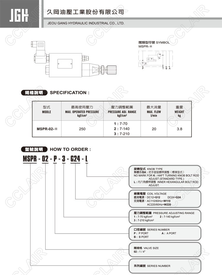 JeouGang臺灣久岡,疊加式電控減壓閥MSPR-02-P-1-G12-K,MSPR-02-P-2-G24-L,MSPR-02-P-3-W110-K,MSPR-02-A-1-W220-L,MSPR-02-A-3-G12-K,MSPR-02-B-1-W220-L,MSPR-02-B-3-G12- K,MSPR-02-B-3-G12-L,MSPR-02-B-3-W110-L,MSPR-02-B-3-W220-K,MSPR-02-B-3-W220-L