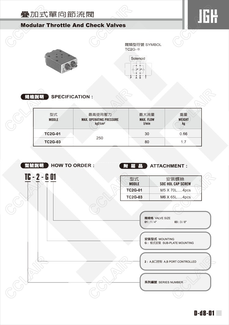 JeouGang臺灣久岡,疊加式單向節(jié)流閥TC-2-G-01,TC-2-G-03