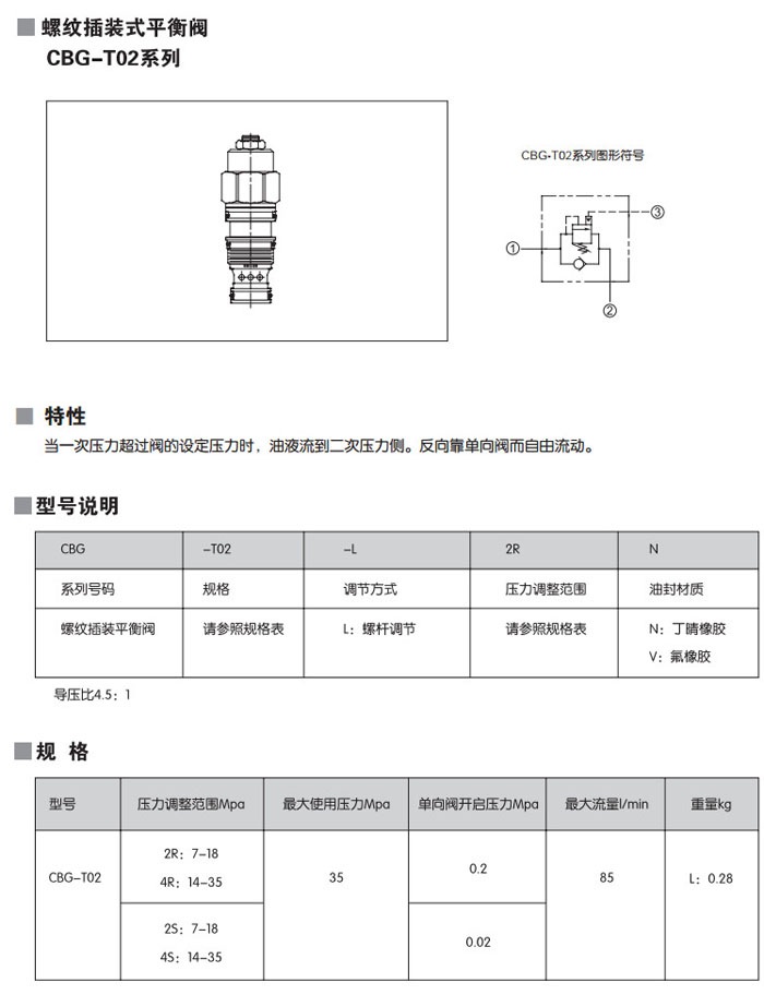 CBG-T02-L2RN,CBG-T02-L4RN,CBG-T02-L2SN,CBG-T02-L4SN,CBG-T02-L2RV,CBG-T02-L4RV,螺紋插裝式平衡閥