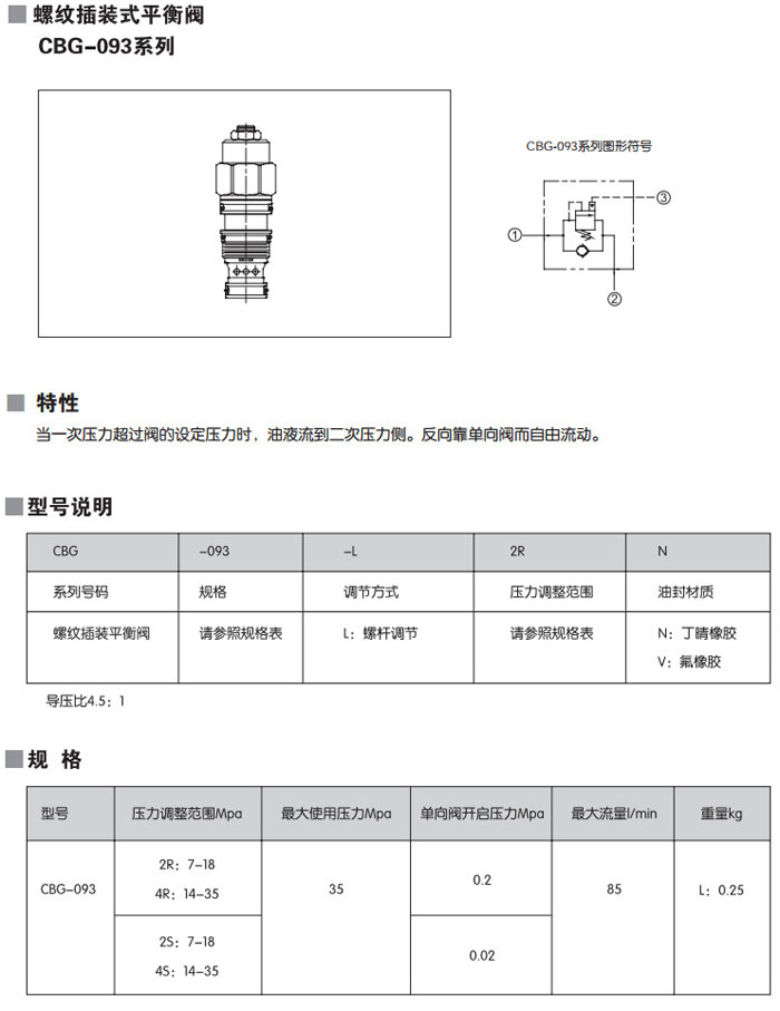 CBG-093-L2RN,CBG-093-L4RN,CBG-093-L2SN,CBG-093-L4SN,CBG-093-L2RV,CBG-093-L4RV,螺紋插裝式平衡閥