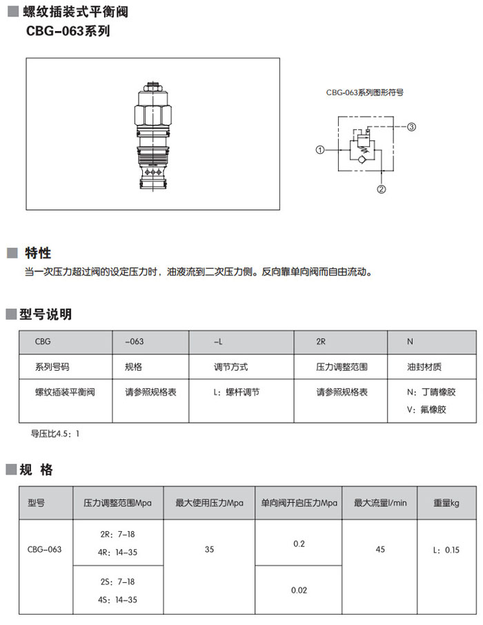 CBG-063-L2RN,CBG-063-L4RN,CBG-063-L2SN,CBG-063-L4SN,CBG-063-L2RV,CBG-063-L4RV,螺紋插裝式平衡閥
