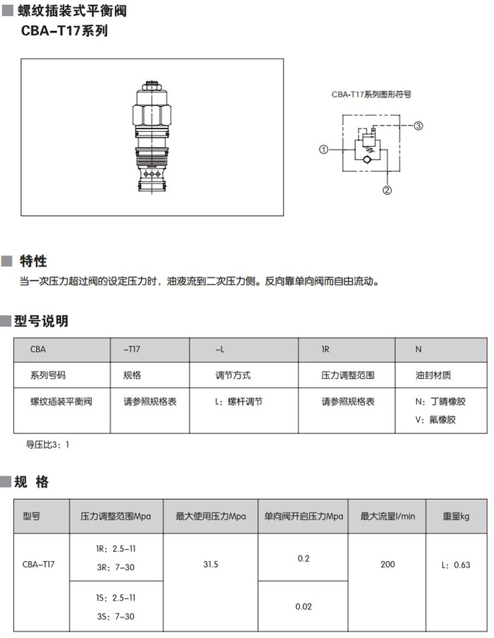 CBA-T17-L1RN,CBA-T17-L3RN,CBA-T17-L1SN,CBA-T17-L3SN,CBA-T17-L1RV,CBA-T17-L3RV,螺紋插裝式平衡閥