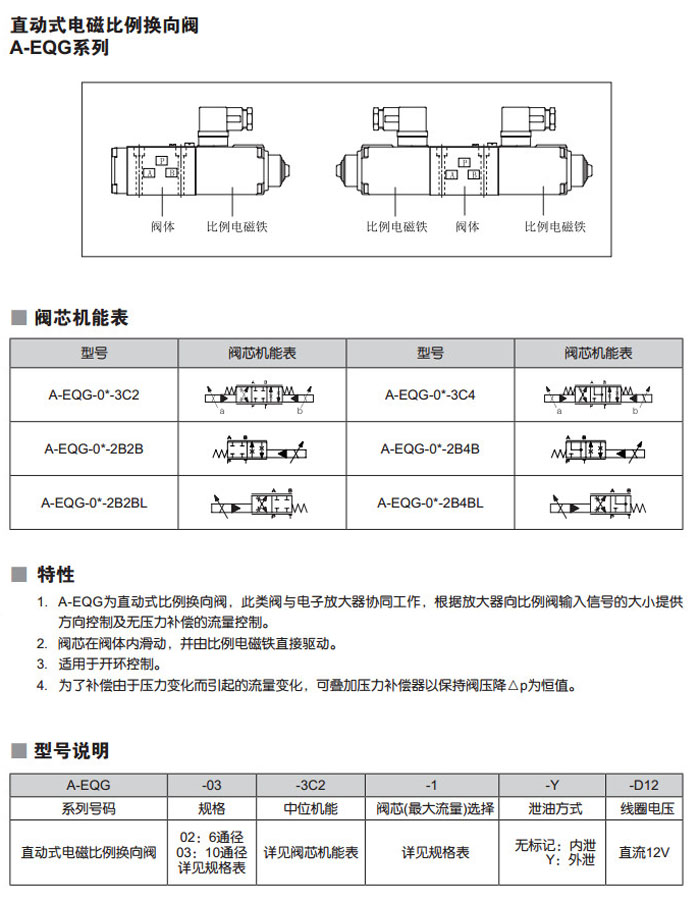 A-EQG-02,A-EQG-03,A-EQG-02-3C2-1-Y-D12,A-EQG-03-3C2-2-Y-D12,直動式電磁比例換向閥