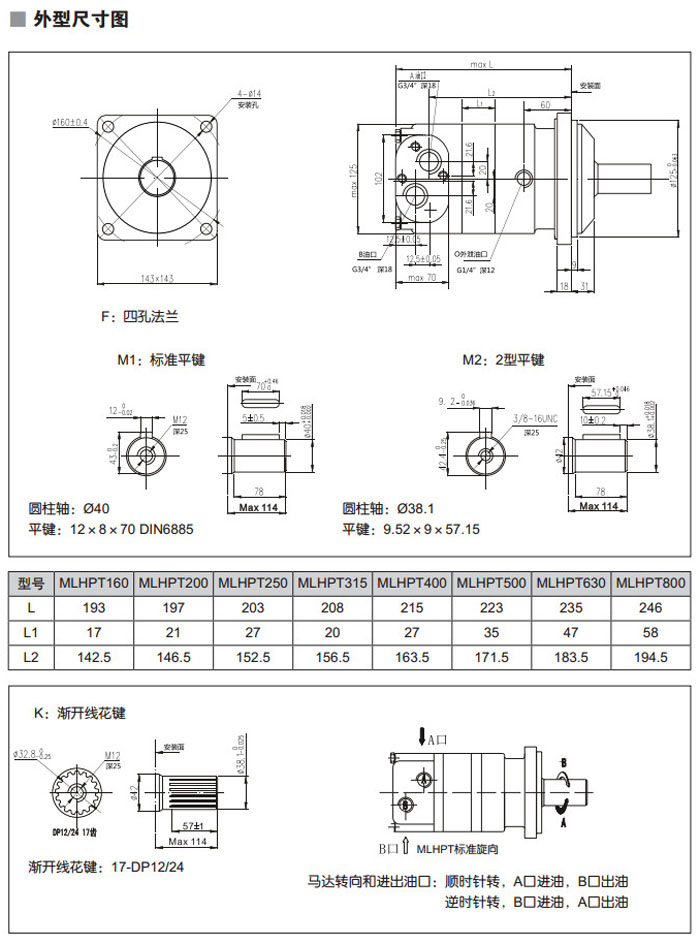 MLHPT-F-160,MLHPT-F-200,MLHPT-F-250,MLHPT-F-315,MLHPT-F-400,MLHPT-F-500,MLHPT-F-630,MLHPT-F-800,重載低速大扭矩馬達
