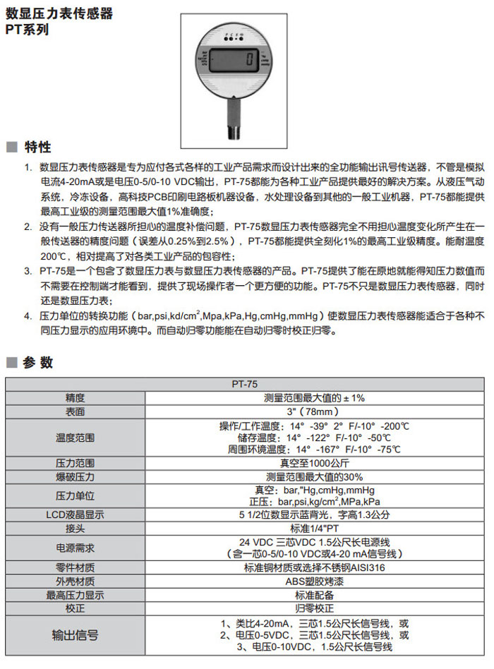 PT-75-A1,PT-75-B2,數(shù)顯壓力表傳感器 詳細(xì)信息 PT-75-A1,PT-75-B2,數(shù)顯壓力表傳感器