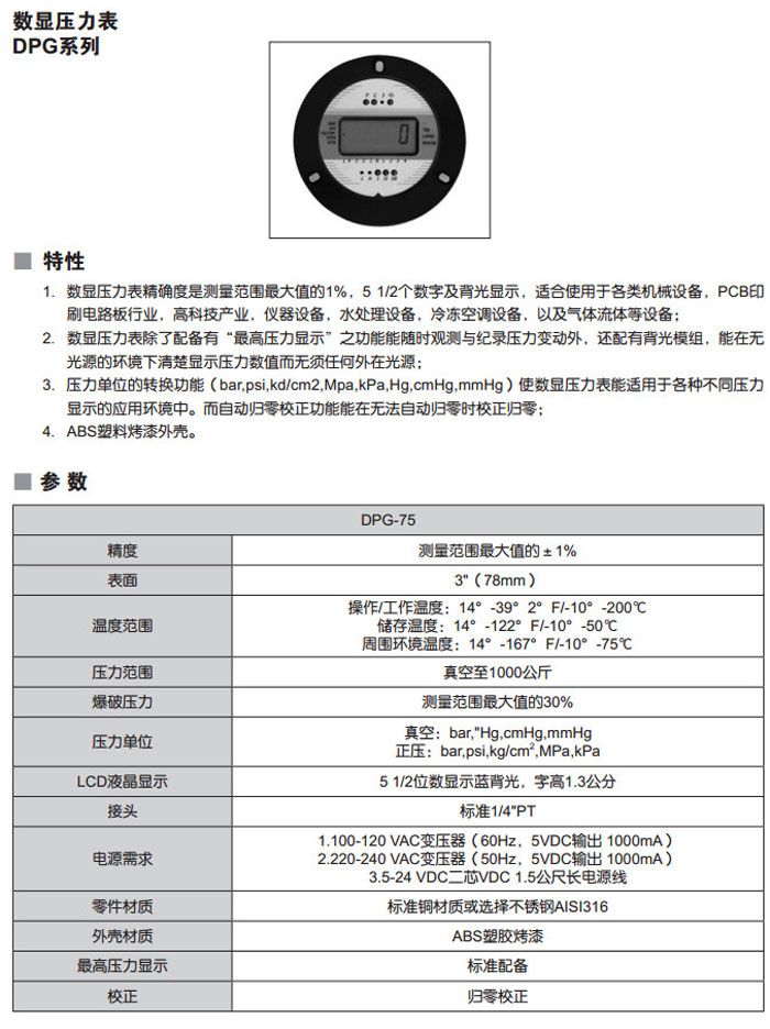 首頁 > 產(chǎn)品&解決方案 > DPG-75-A1,DPG-75-B2,數(shù)顯壓力表