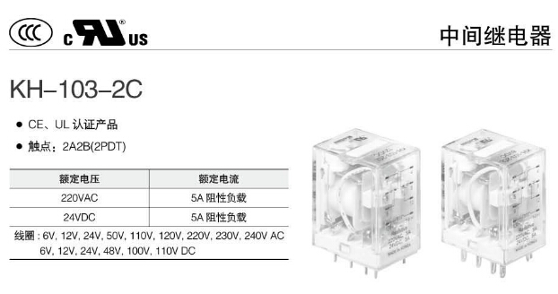 KH-103-2C,KH-103-2CL,KH-103-2CP,KH-103-2CPL,Koino中間繼電器