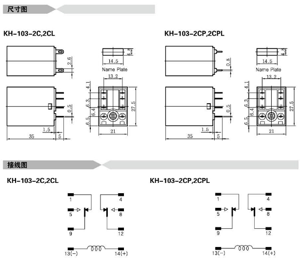 詳細信息 KH-103-2C,KH-103-2CL,KH-103-2CP,KH-103-2CPL,Koino中間繼電器