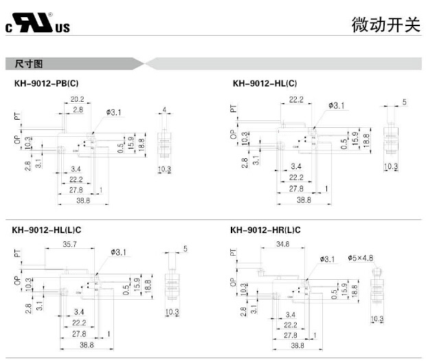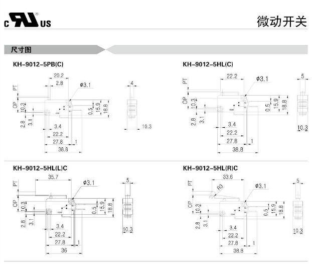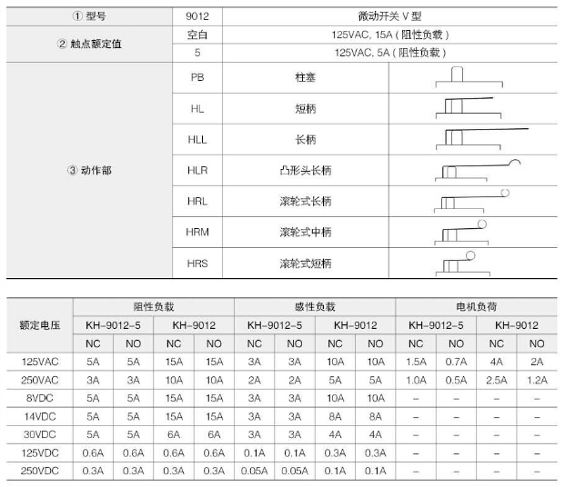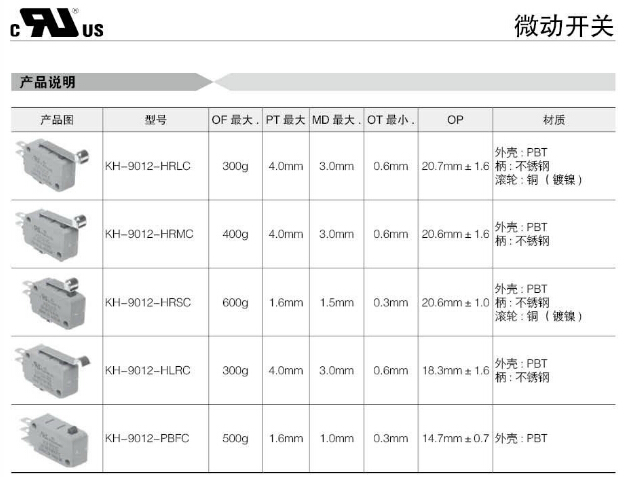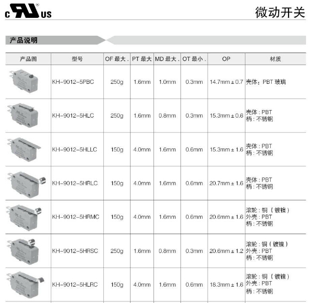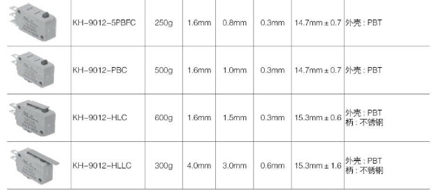 KH-9012-5,KH-9012,KH-9012-5PBC,KH-9012-5HLC,KH-9012-HLC,KH-9012-HRLC,KH-9012-HRMC,Koino微動開關