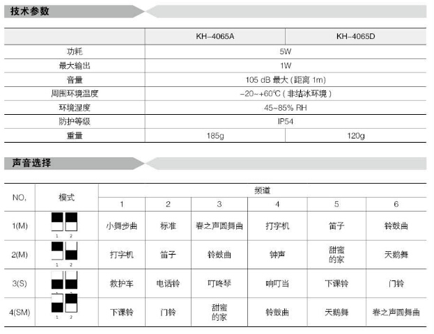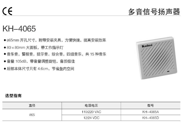 KH-4065A,KH-4065D,Koino 多音信號揚(yáng)聲器