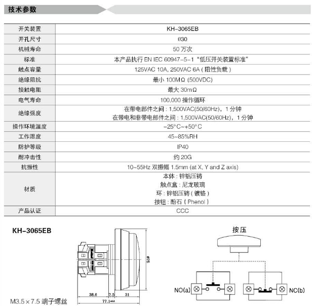 詳細(xì)信息 KH-3065EB,Koino Φ30重負(fù)荷開(kāi)關(guān)