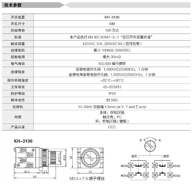 詳細(xì)信息 KH-3130,Koino Φ30重負(fù)荷開關(guān)