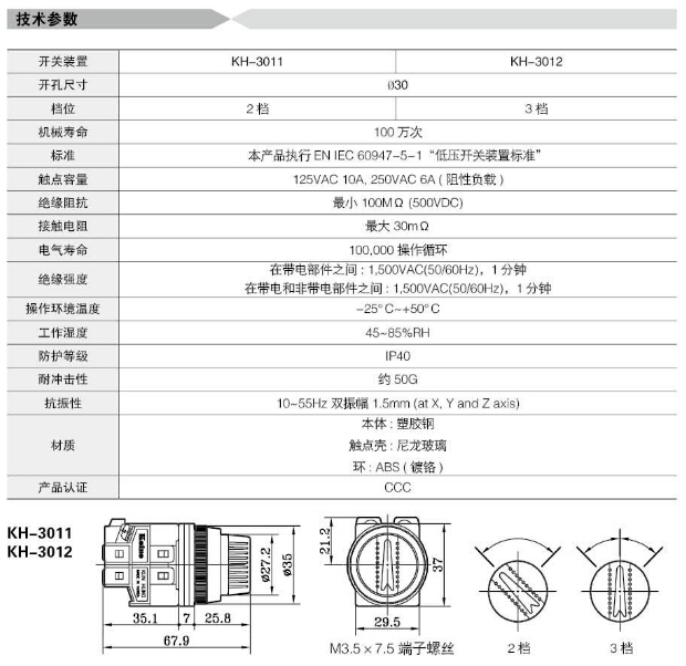 詳細(xì)信息 KH-3011,KH-3012,Koino Φ30重負(fù)荷開關(guān)