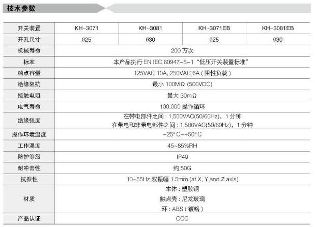 詳細(xì)信息 KH-3071,KH-3071EB,KH-3081,KH-3081EB,Koino按鈕開關(guān)