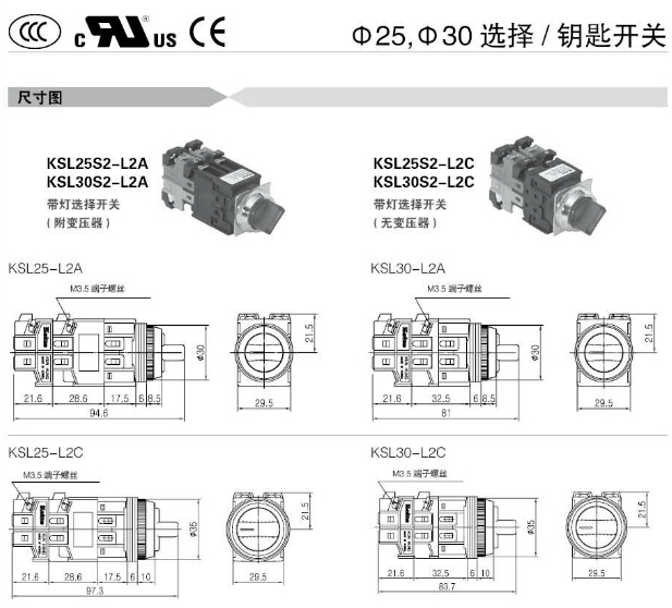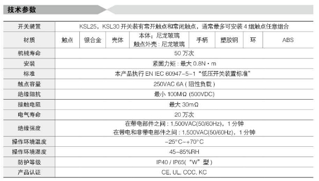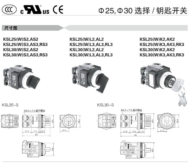 詳細(xì)信息 KSL25K2,KSL25AK2,KSL25WK2,KSL25WAK2,KSL25RK3,KSL30WRK3,KSL30WK2,Koino鑰匙開關(guān)