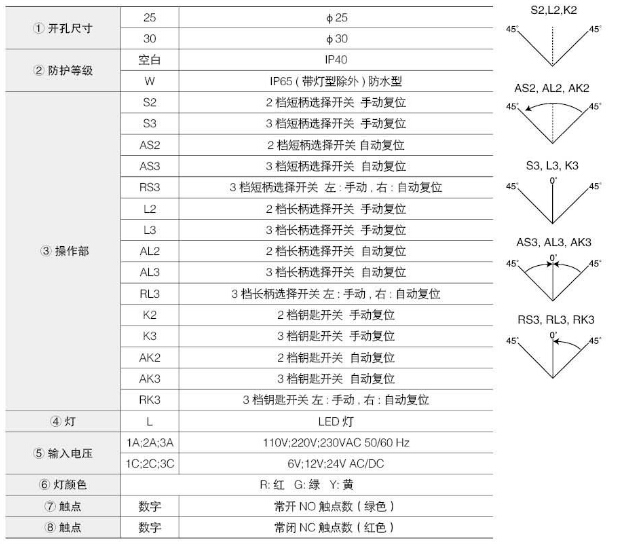 KSL25S2,KSL25AS2,KSL25RS3,KSL30S2,KSL30AS2,KSL30RS3,KSL25WS2,KSL30WAS2,KSL25S2-L2A,Koino選擇開關(guān)