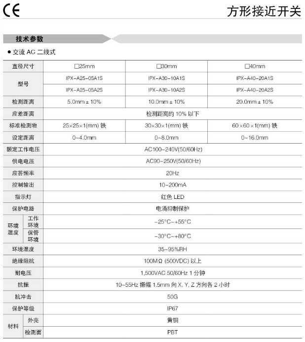 詳細(xì)信息 IPX-2D25-05A1S,IPX-2D30-10A1S,IPX-2D40-20A1S,IPX-A25-05A1S,IPX-A30-10A1S,IPX-A40-20A1S,Koino方形接近開(kāi)關(guān)