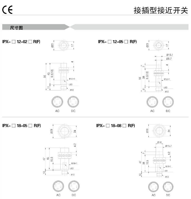 IPX-2D30-10A1R,IPX-A12-02A1R,IPX-A18-05A1R,IPX-A30-15A1RN,Koino接插型接近開(kāi)關(guān)