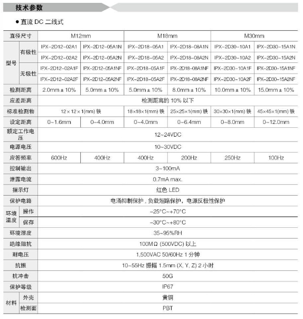 IPX-D12-06E1N,IPX-D18-08E1N,IPX-D30-10E1,IPX-2D12-02A1F,IPX-2D18-08A1NF,Koino圓柱形接近開關(guān)