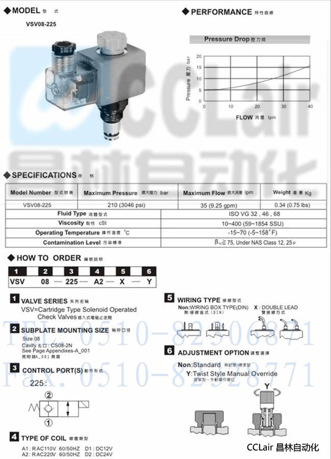 VSV08-225, 插入式電磁閥,