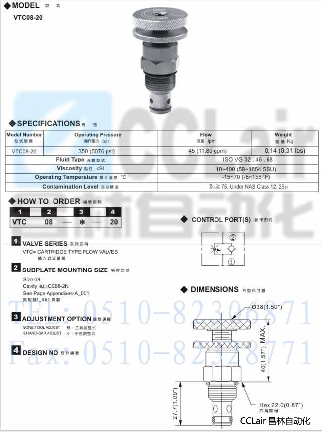VTC-08-20,插入式流量閥,