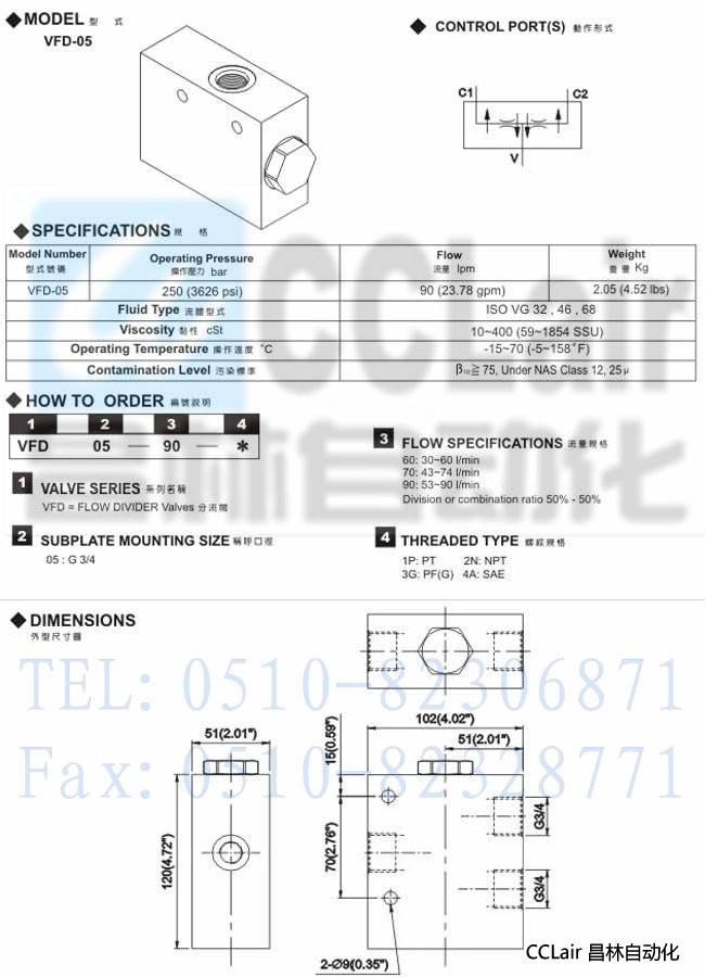 VFD-05,插入式分流閥,