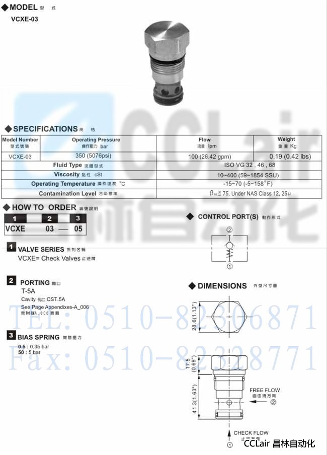 VCXE-03,插入式止逆閥,