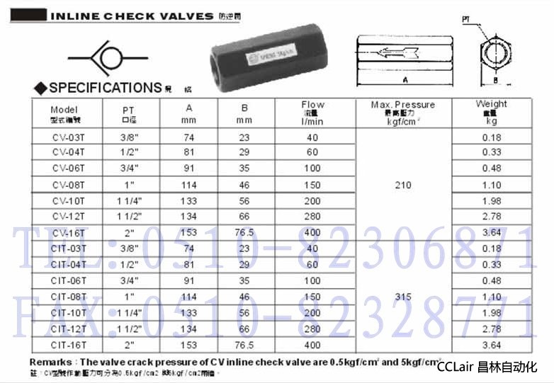 詳細(xì)信息 CV-03T,CV-04T,CV-06T,CV-08T,CV-10T,CV-12T,CV-16T,防逆閥,