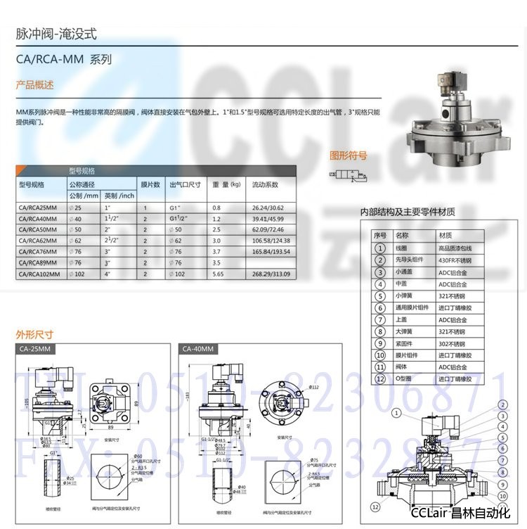 詳細信息 CA/RCA25MM,CA/RCA40MM,CA/RCA50MM,淹沒式脈沖閥