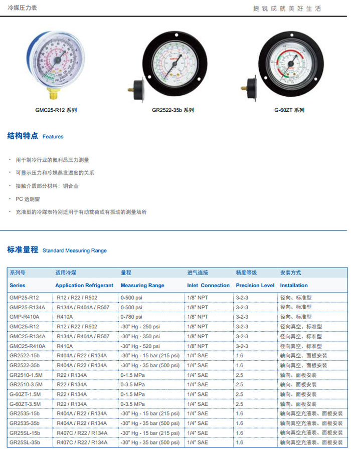 首頁(yè) > 產(chǎn)品&解決方案 > GMP25-R134A,GMP-R410A,GMC25-R12,GR2522-15b,GR25SL-15b,冷媒壓力表