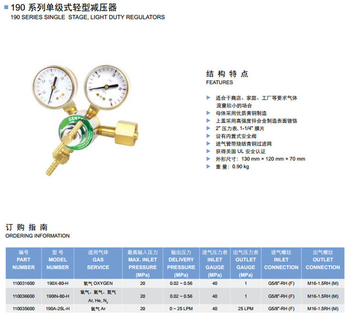 190X-80-H,190IN-80-H,190A-25L-H,單級(jí)式輕型減壓器 詳細(xì)信息 190X-80-H,190IN-80-H,190A-25L-H,單級(jí)式輕型減壓器