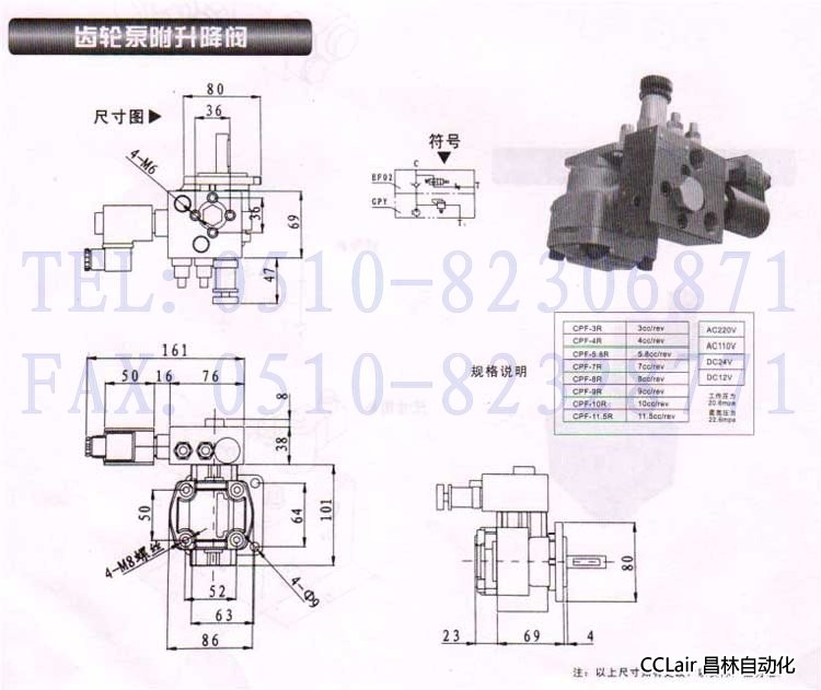 CPF-3R,CPF-4R,CPF-5.5R,CPF-7R,CPF-8R,CPF-9R,CPF-10R,CPF-11.5R,齒輪泵附升降閥