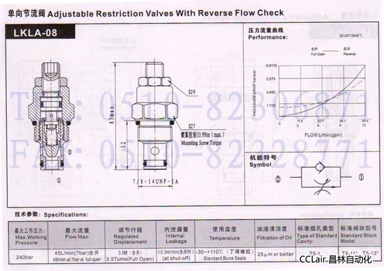 詳細(xì)信息 LKLA-08,單向節(jié)流閥