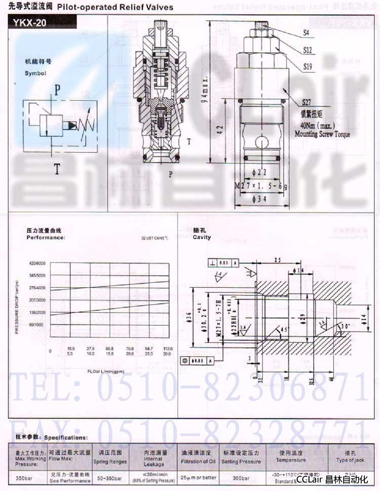詳細(xì)信息 YKX-20,先導(dǎo)式溢流閥