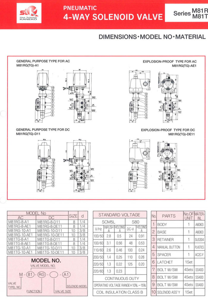 詳細信息 M81RG-8-A1,M81RG-10-A1,M81TG-8-A1,M81TG-10-A1,M81RG-8-D11,KANEKO氣動4路電磁閥